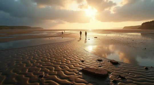 The tide’s incoming speed reaches 6-8 kilometers per hour during peak flow, faster than walking pace. This seemingly modest velocity proves deceptive across the bay’s wide tidal flats, where water advances across multiple fronts simultaneously. Visitors engrossed in photographing exposed formations may find themselves surrounded by channels within 10-15 minutes, transforming casual exploration into genuine emergency.