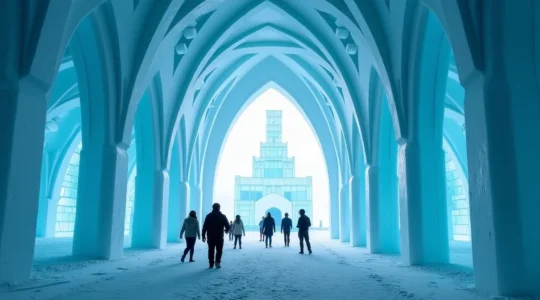 Quebec’s Hôtel de Glace, reconstructed annually from approximately 500 tons of ice and 15,000 tons of snow, represents Canada’s premier ice accommodation experience. Operating from January through March, this architectural phenomenon maintains internal temperatures between -3°C and -5°C regardless of external conditions, creating a controlled extreme environment that challenges conventional notions of comfortable lodging.